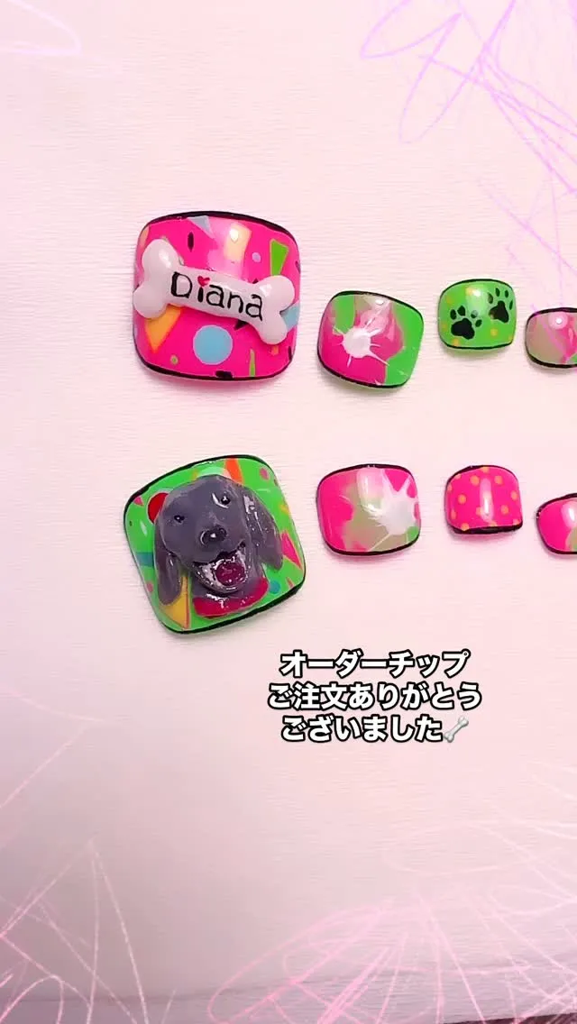 オーダーチップありがとうございました。⁡ワイマナラーの🐶を3D🦴に名前をいれて他は派手にとオーダーいただきました。⁡オーダーチップのお問い合わせもお待ちしております✨⁡⁡✴︎✴︎✴︎✴︎✴︎✴︎✴︎✴︎✴︎✴︎✴︎✴︎✴︎✴︎…