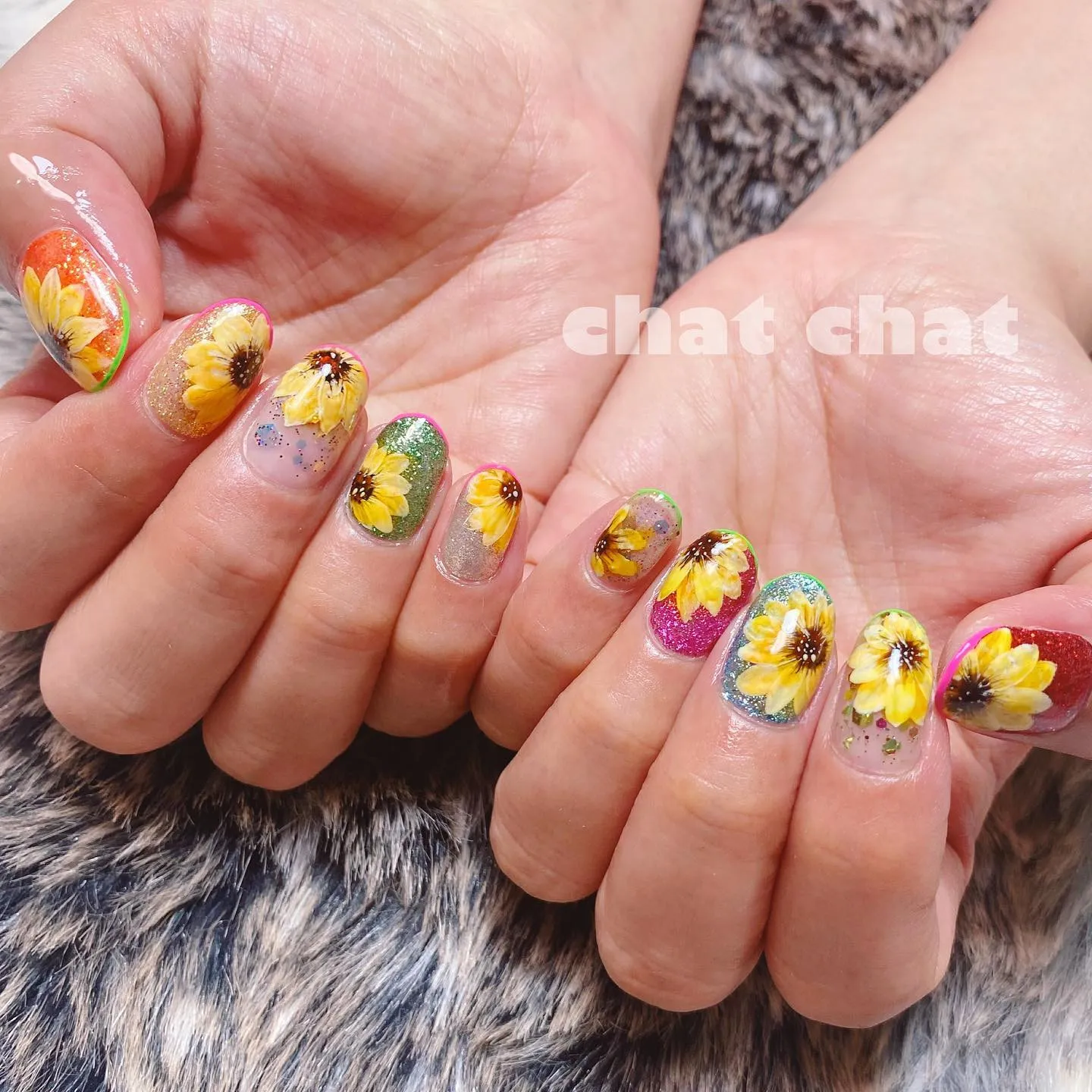 ラメギラギラにひまわりを描きました。