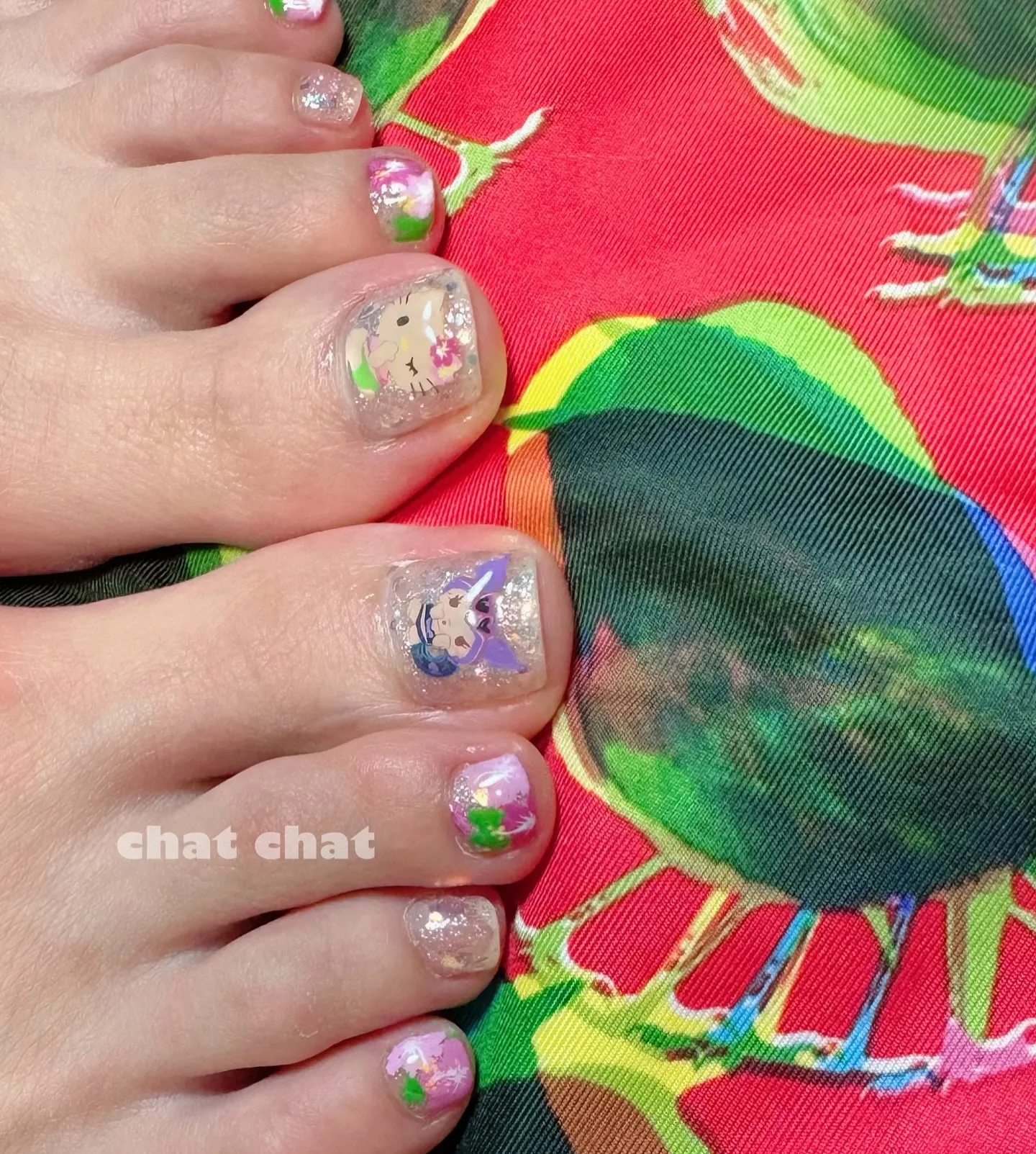 フットネイルに人気な例のシール的なデザインを。